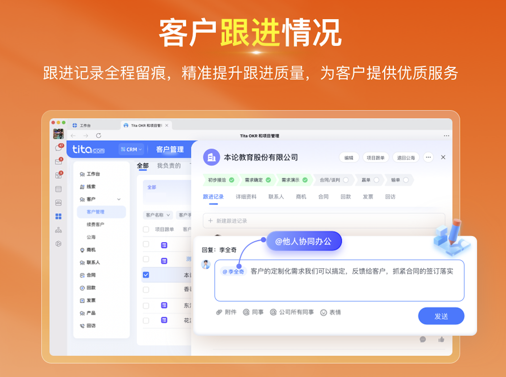 2024, Tita 重磅发布新品,开启“客户管理”与“项目交付”双引擎,帮助企业驱动业绩飙升!立即了解 《Tita 新CRM销售管理一体化》 。