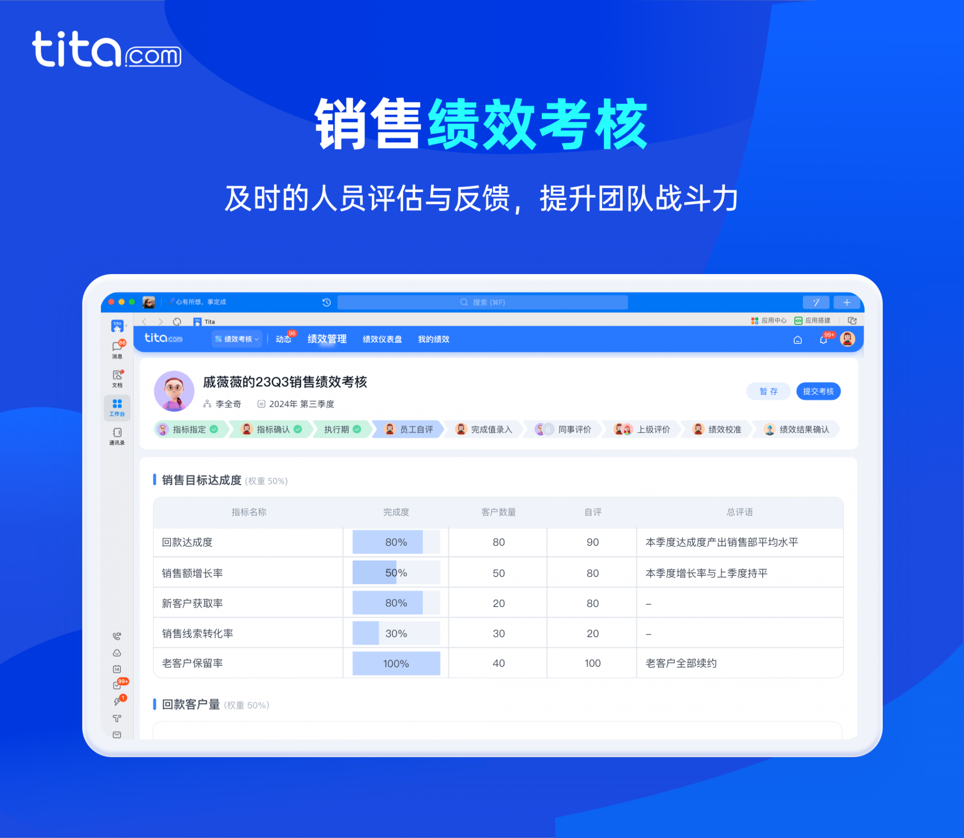 Tita将业务结果与绩效评估深度绑定,解决考核“凭感觉”的痛点: